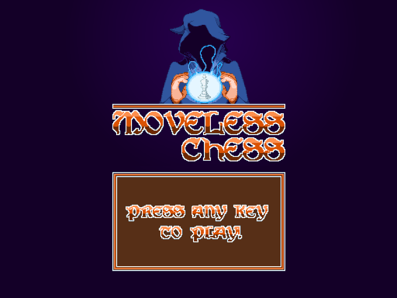 Moveless Chess is a game developed by Nico Saraintaris (Game Design and Code), Aikalen (Art) and Trance Cyberian (OST).